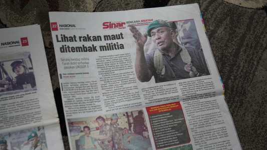 “Tapi jangan naik membabi buta (nanti) kita kena. Kena tengok arah peluruh, berapa peluru ditembak. Kalau terus naik jadi umpanlah kita. Tak fikir akan cedera atau apa, cuma fikir ‘aku tak tembak kau (musuh), kau tembak aku.’ Itu saja.”